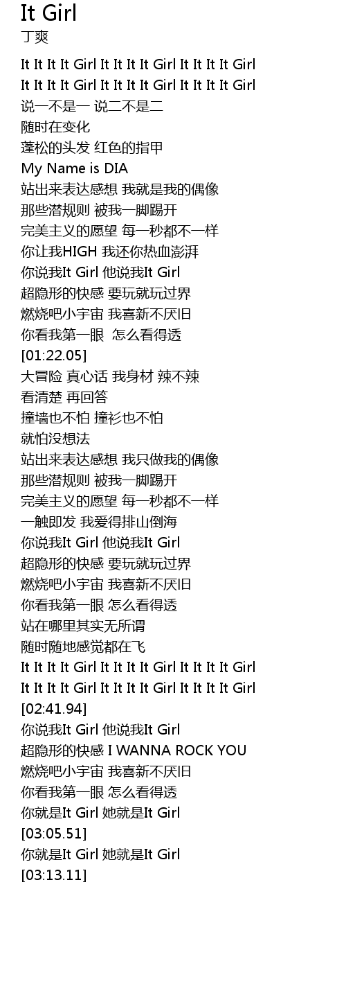 | [03:02.00] | 你就是It Girl 她就是It Girl |