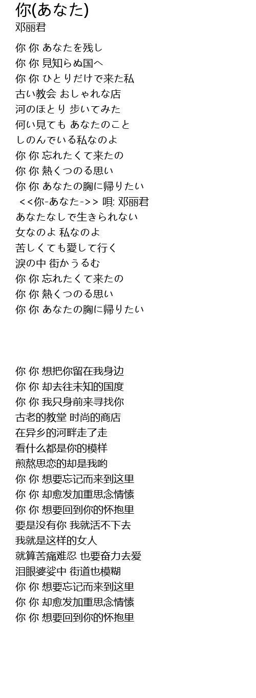 <<你-あなた->> 唄: 邓丽君 |