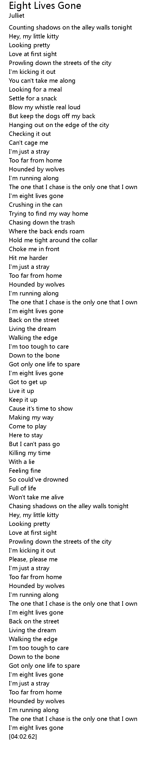 | [02:57.64] | Chasing shadows on the alley walls tonight |