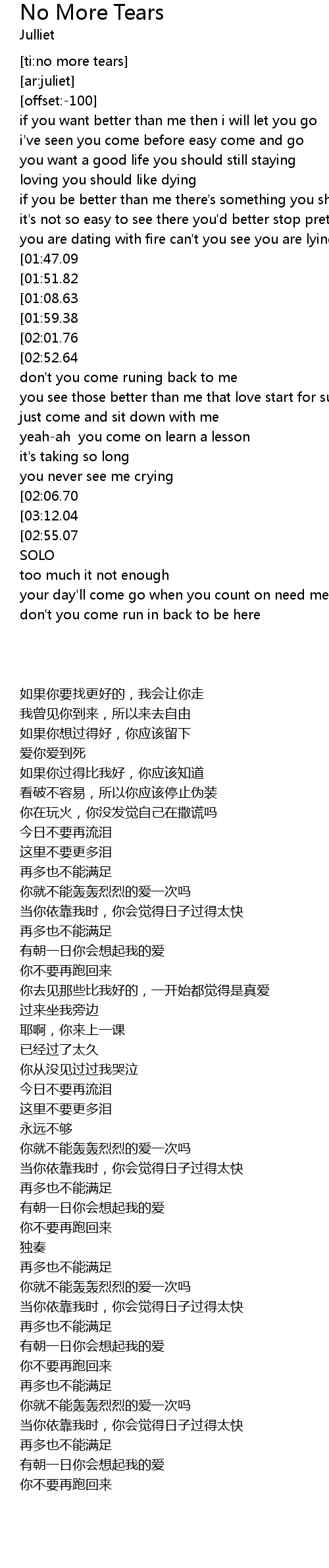 | [01:56.99][02:06.70][02:40.60][02:59.93] | too much just not enough |