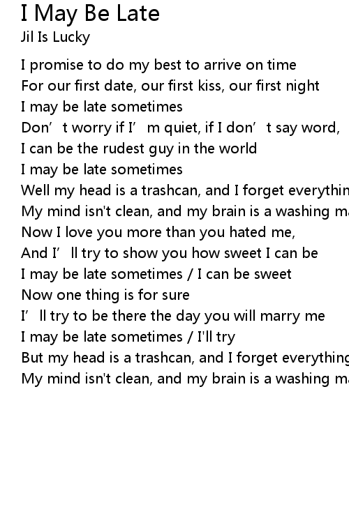 | Song | I May Be Late |