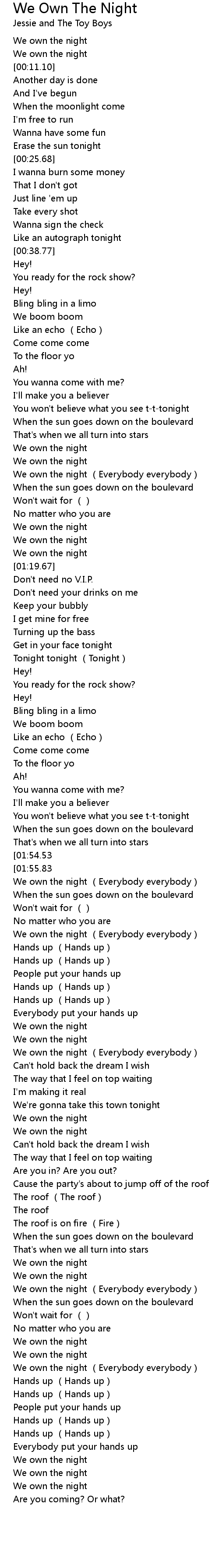 | [01:57.57] | We own the night (Everybody everybody) |