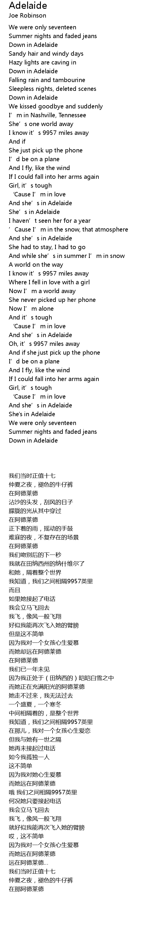 | [01:28.57] | She' s in Adelaide |