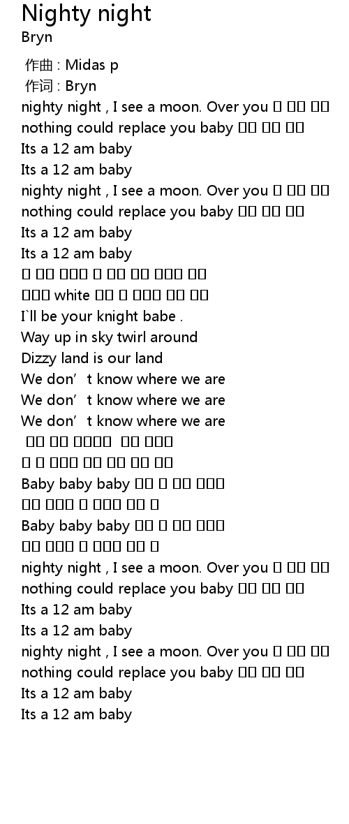 | [01:28.650] | nighty night , I see a moon. Over you |