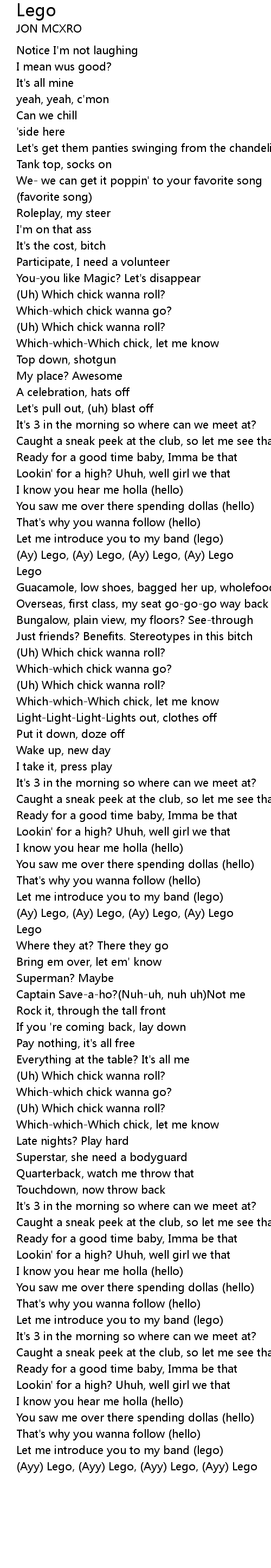 (Ayy) Lego, (Ayy) Lego, (Ayy) Lego, (Ayy) Lego |