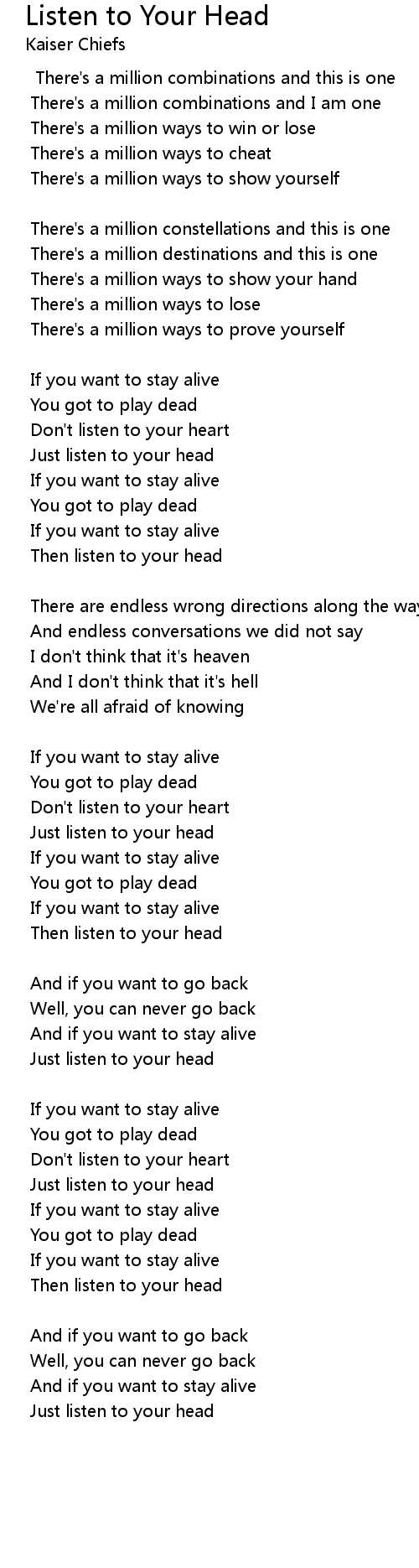 And if you want to stay alive |