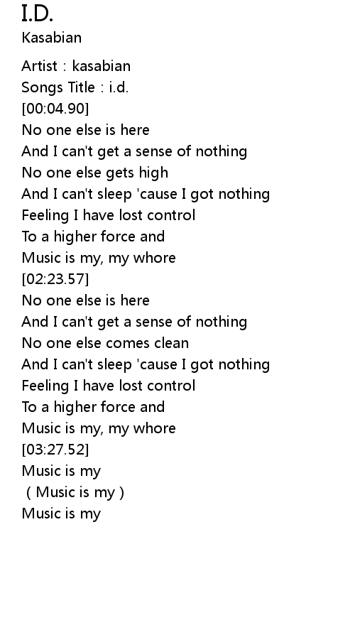 | [00:02.53] | Songs Title: i. d. |