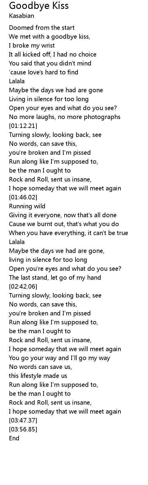 We met with a goodbye kiss, |