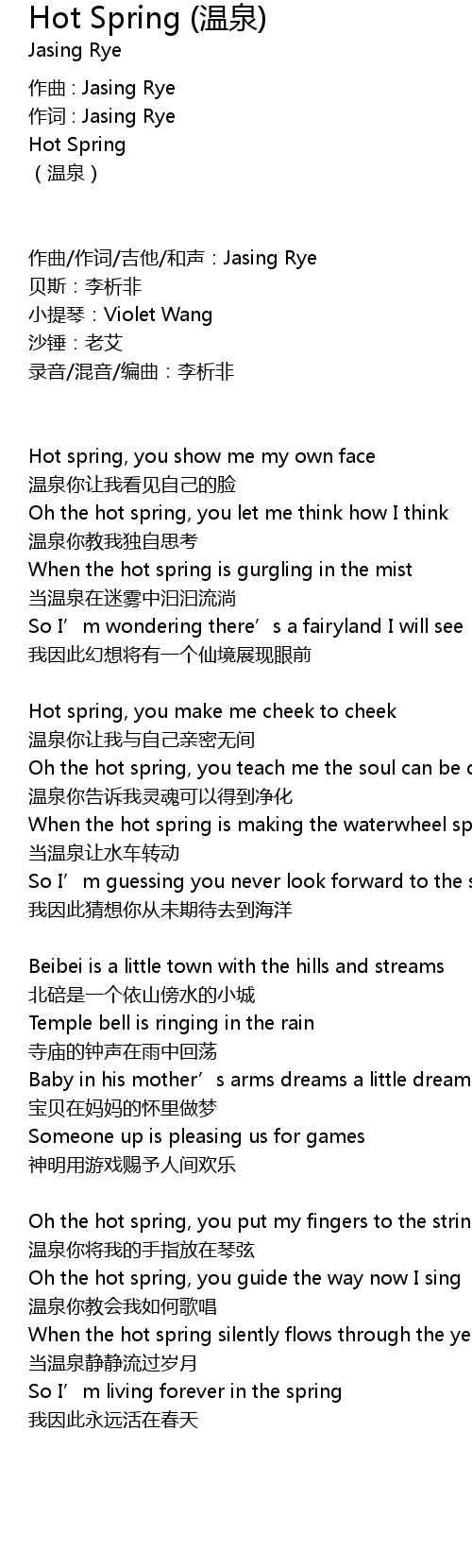 | 作曲/作词/吉他/和声:Jasing Rye | |
