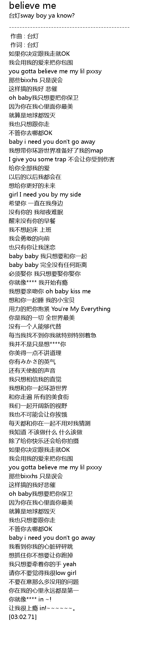 | [02:12.47] | you gotta believe me my lil pxxxy |