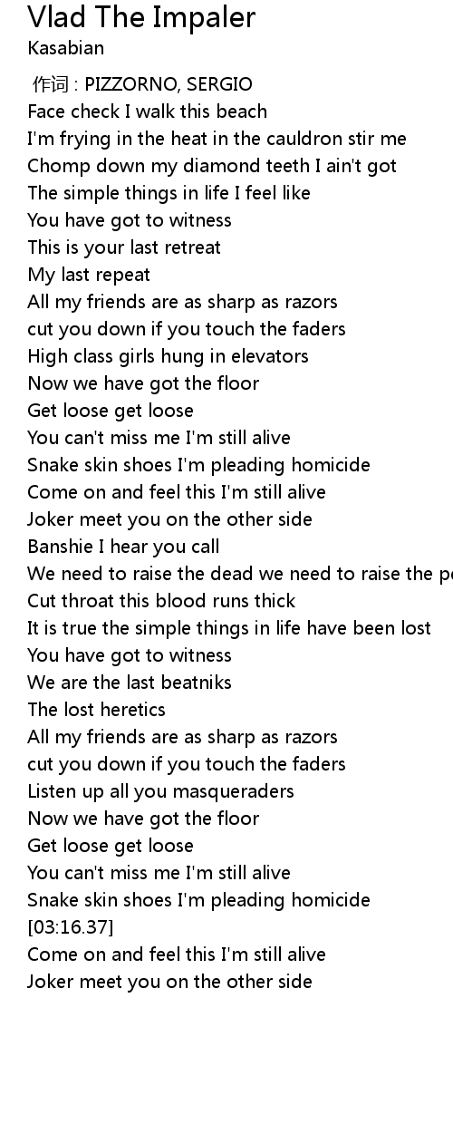 | [03:17.61] | Come on and feel this I'm still alive |