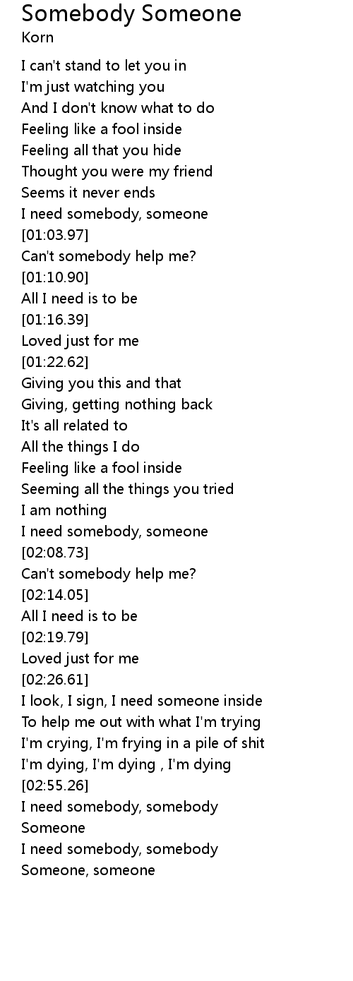 I need somebody, someone |