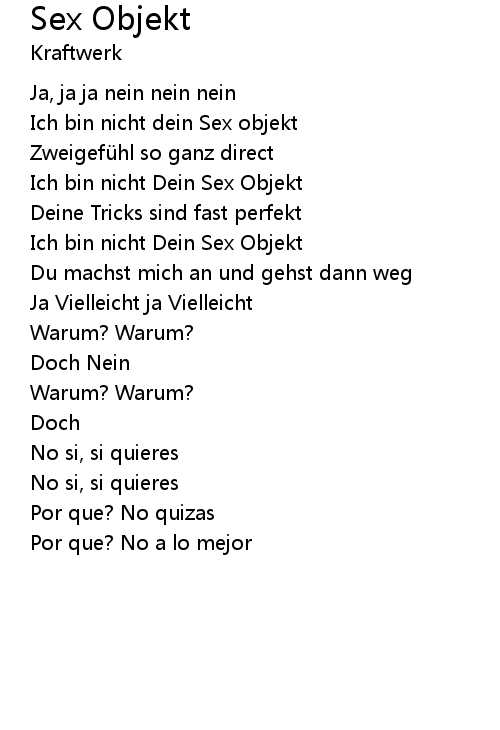 | Song | Sex Objekt |
