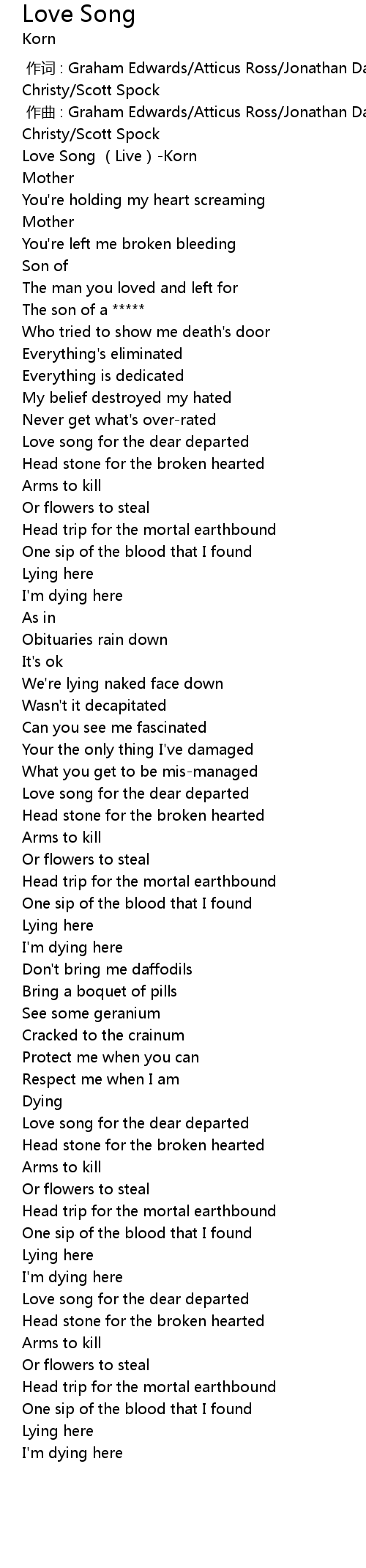 | [00:00.000] | 作词 : Graham Edwards/Atticus Ross/Jonathan Davis/Lauren Christy/Scott Spock |