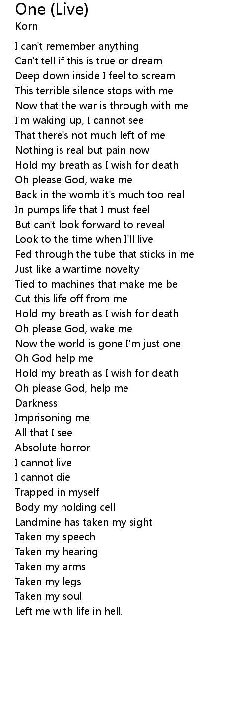 Now the world is gone I'm just one |