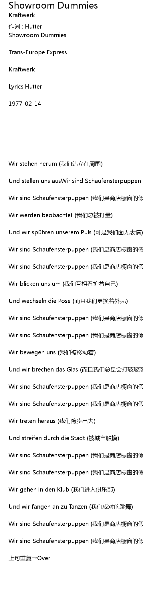 | Wir sind Schaufensterpuppen (我们是商店橱窗的假人) | |
