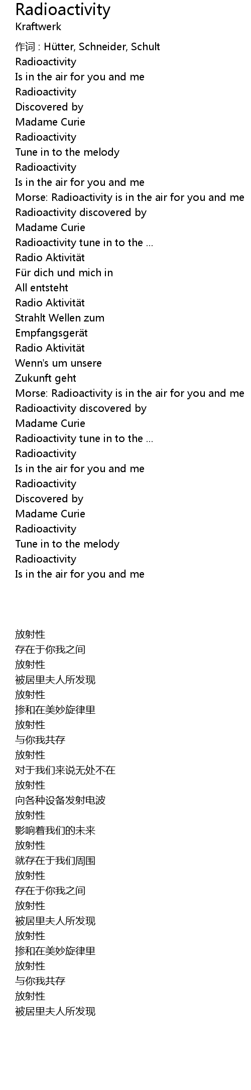 | 作词 : Hütter, Schneider, Schult | |