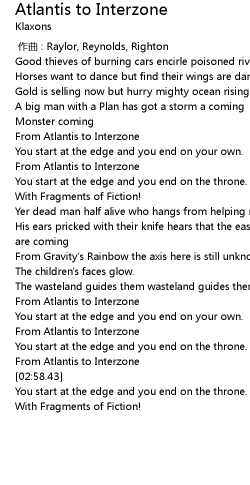 | [01:59.18] | From Gravity's Rainbow the axis here is still unknown |