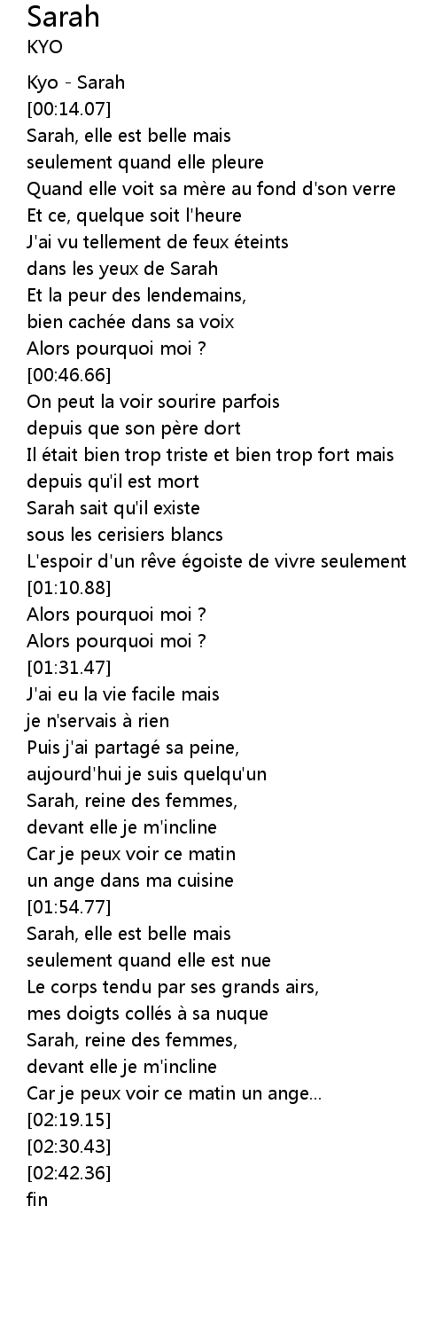 | [01:55.14] | Sarah, elle est belle mais |