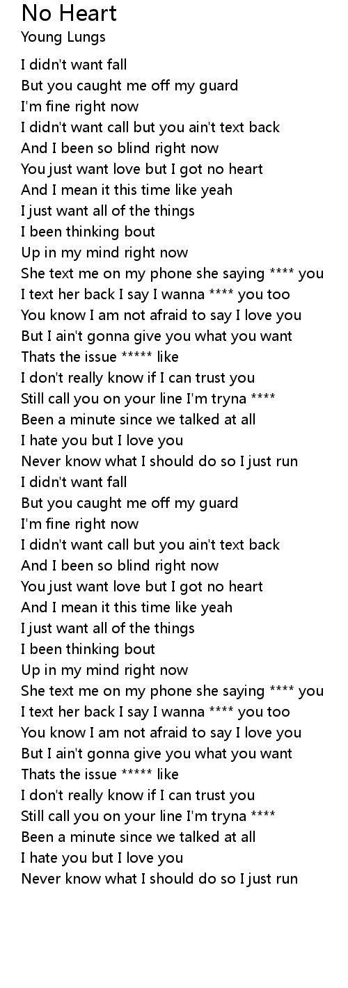 You just want love but I got no heart |
