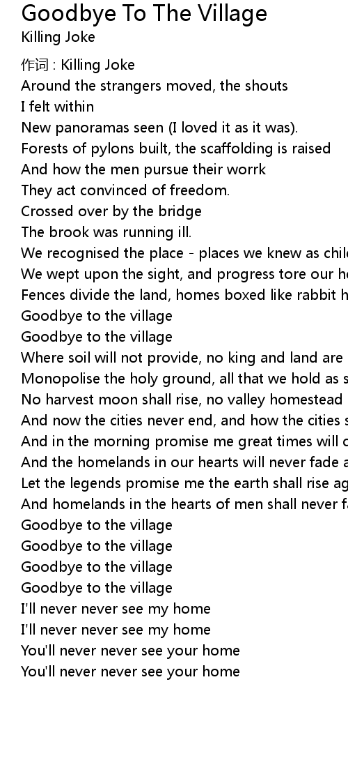 | Song | Goodbye To The Village |