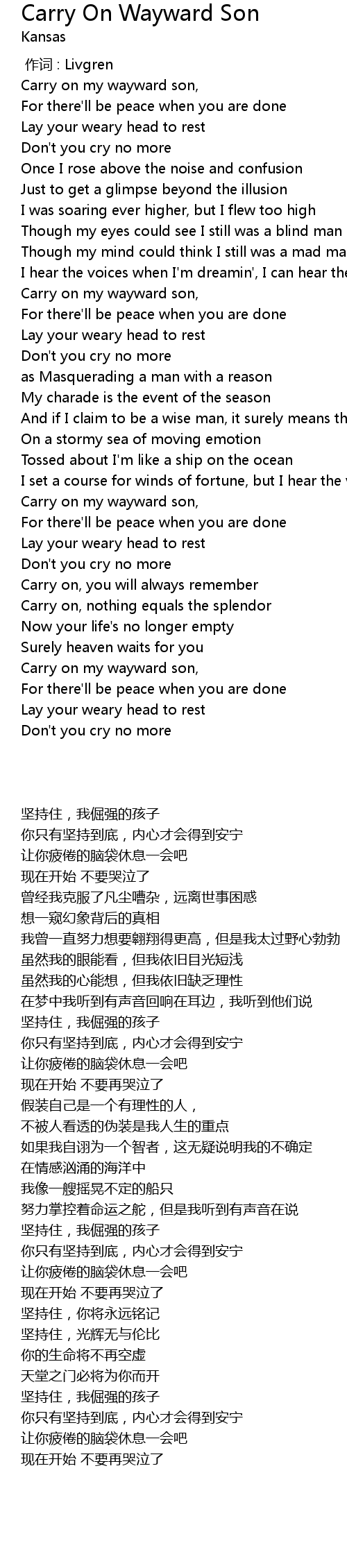 | [03:49.21] | Carry on, nothing equals the splendor |