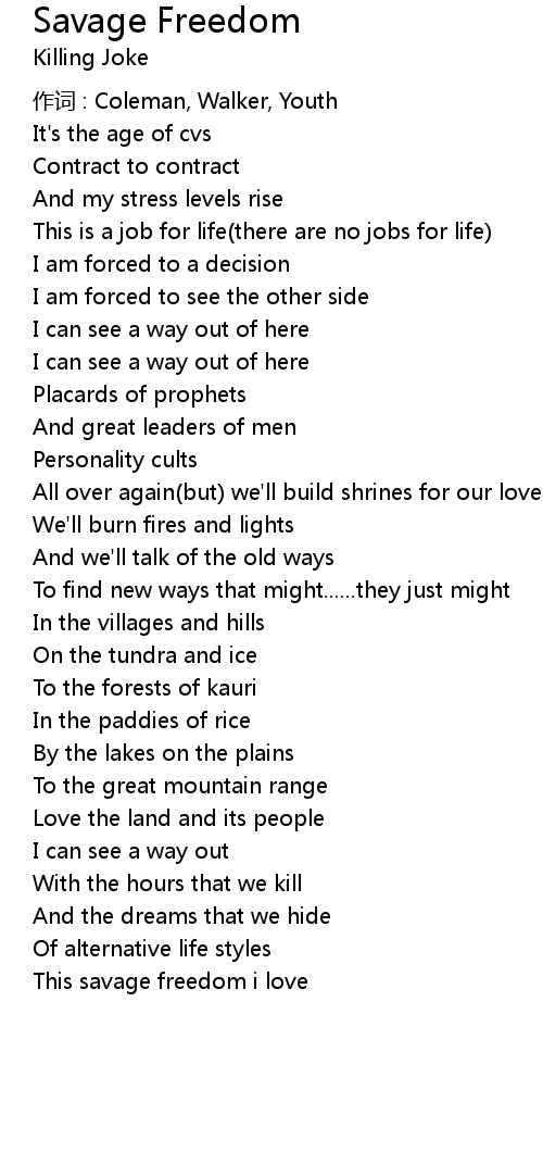| This savage freedom i love |