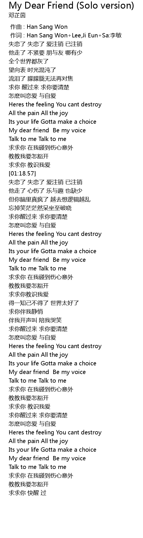 | [00:59.77] | My dear friend Be my voice |