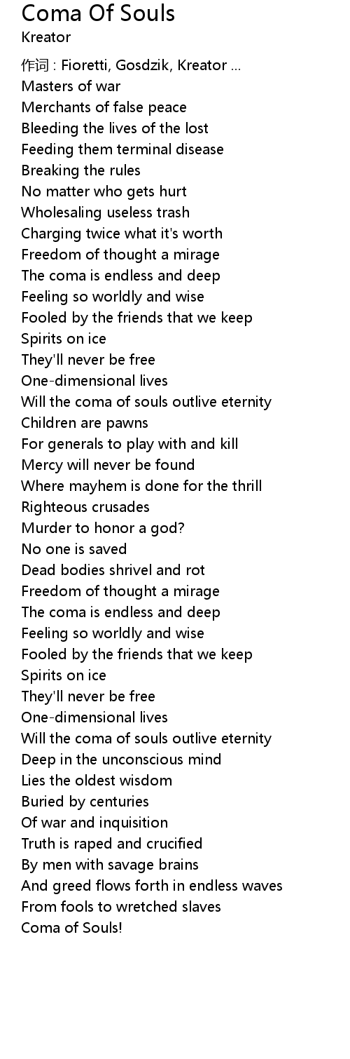 | Song | Coma Of Souls |
