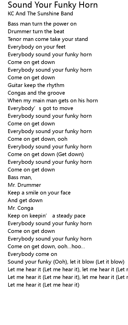 | Everybody sound your funky horn | |