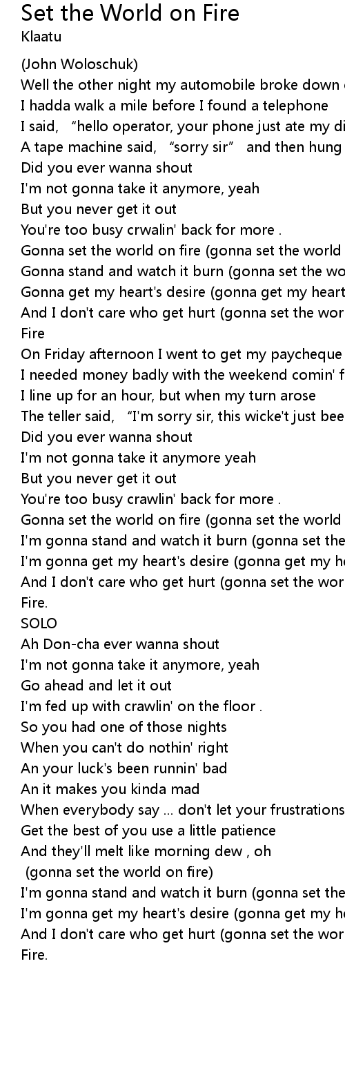| Gonna set the world on fire (gonna set the world on fire) | |