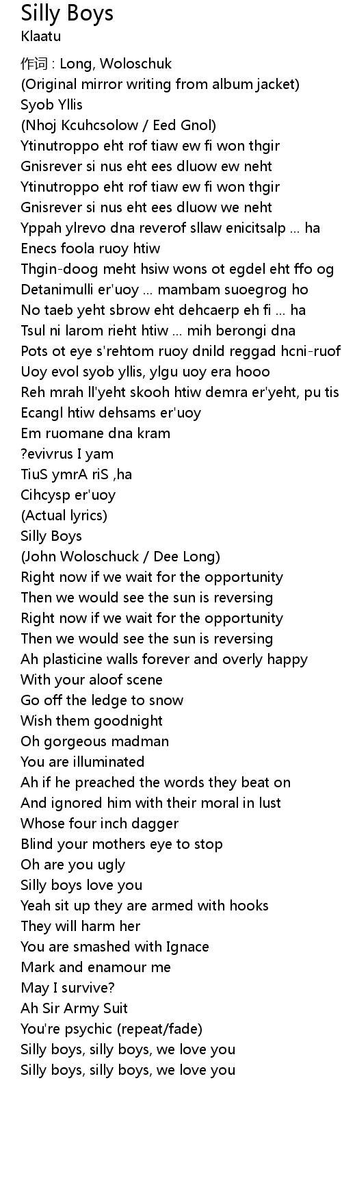 | Uoy evol syob yllis, ylgu uoy era hooo | |
