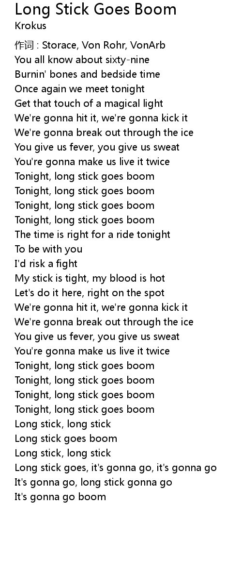 | Song | Long Stick Goes Boom |