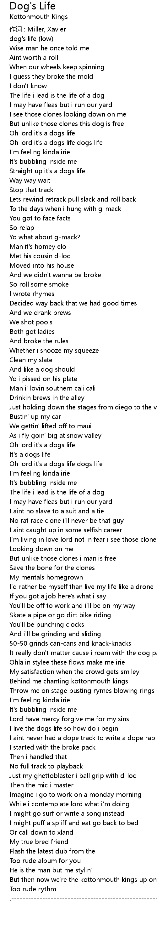 | The life i lead is the life of a dog | |