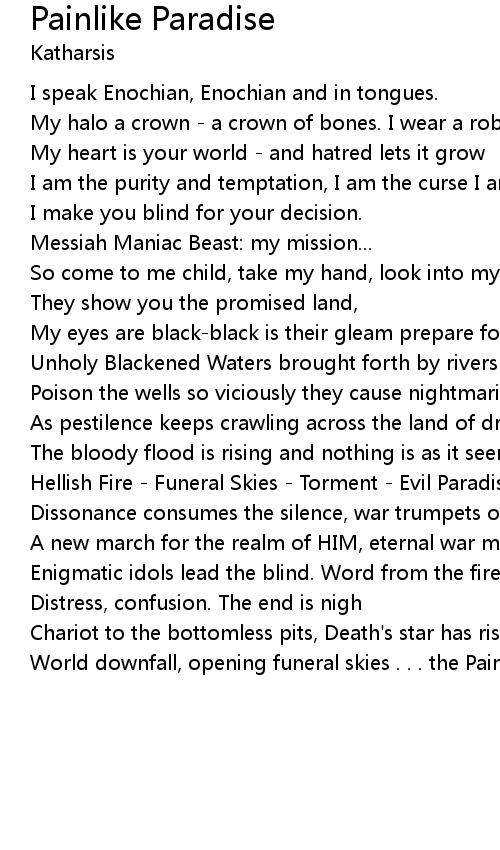 World downfall, opening funeral skies . . . the Painlike Paradise |