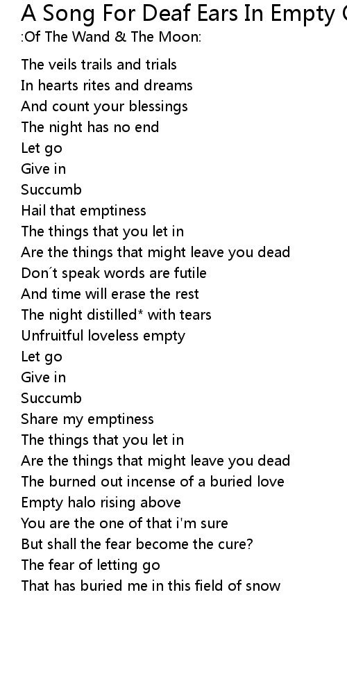 | Song | A Song For Deaf Ears In Empty Cathedrals |