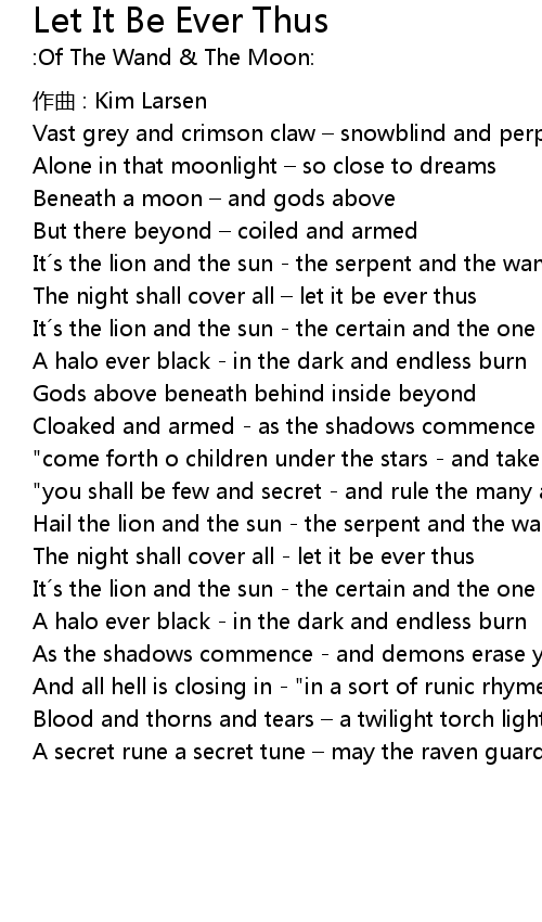 | Hail the lion and the sun the serpent and the wand | |