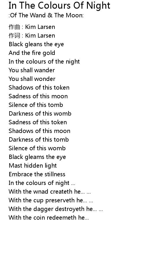 | Song | In The Colours Of Night |