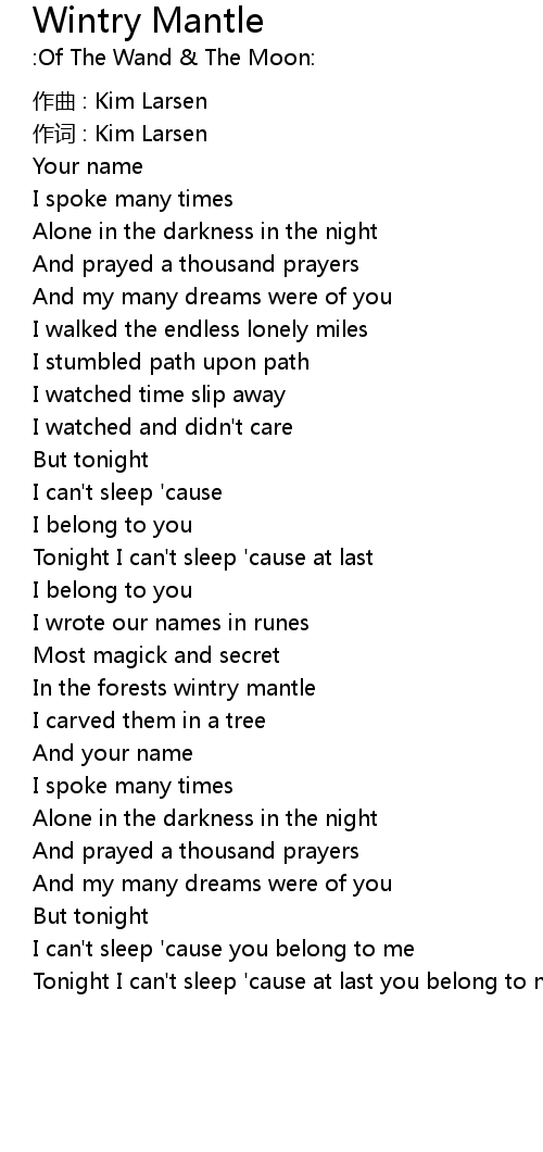| I can' t sleep ' cause you belong to me | |