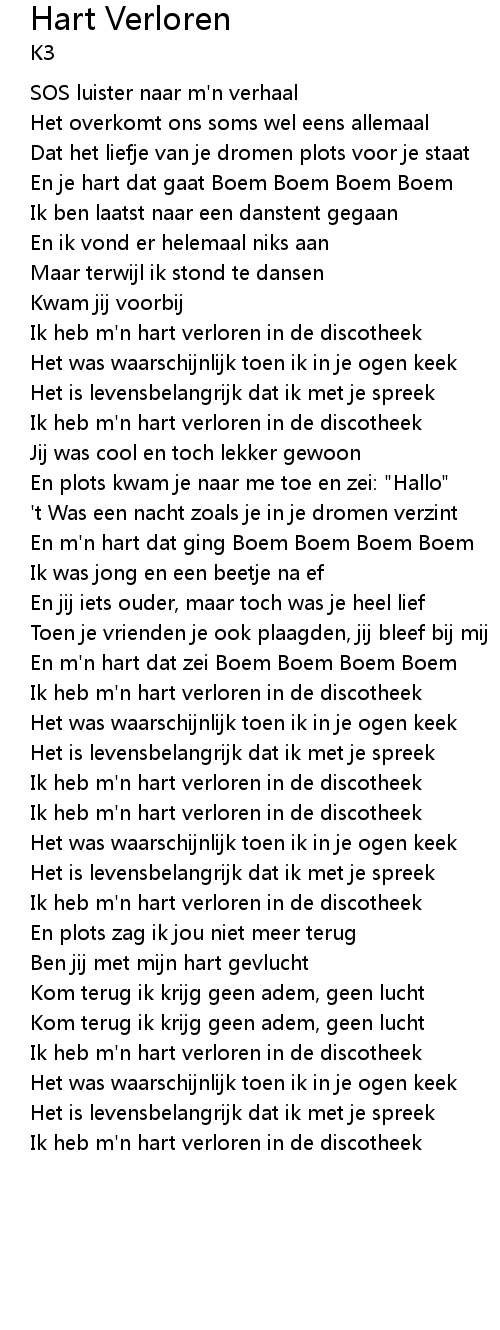 | En je hart dat gaat Boem Boem Boem Boem | |