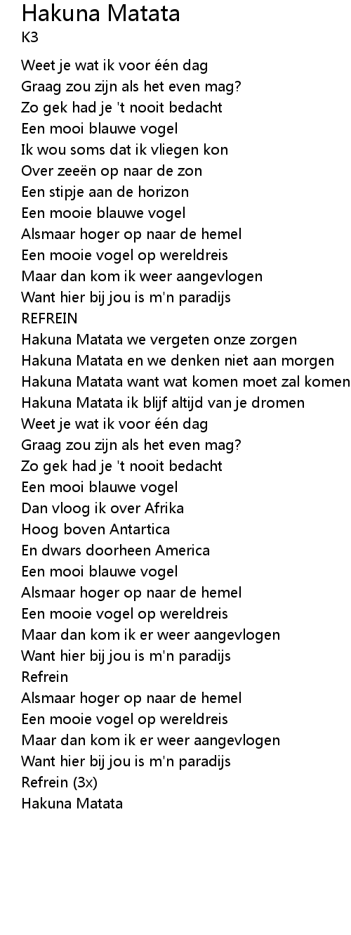 | Hakuna Matata ik blijf altijd van je dromen | |