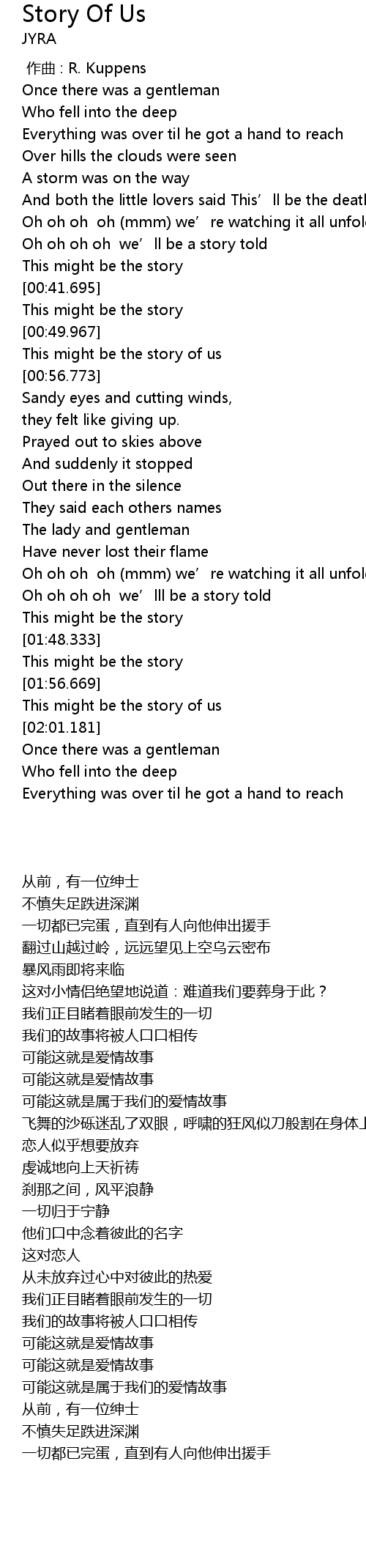 | [00:33.179] | Oh oh oh oh we’ll be a story told |
