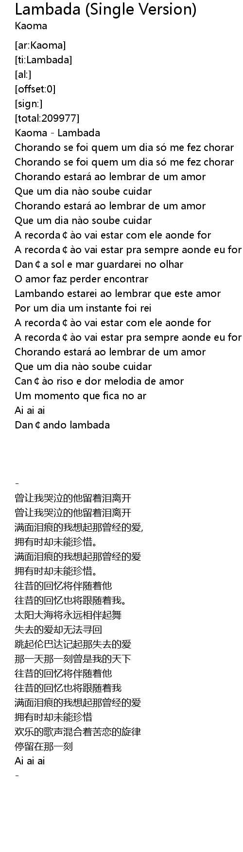 | [00:01.32] | Kaoma Lambada |
