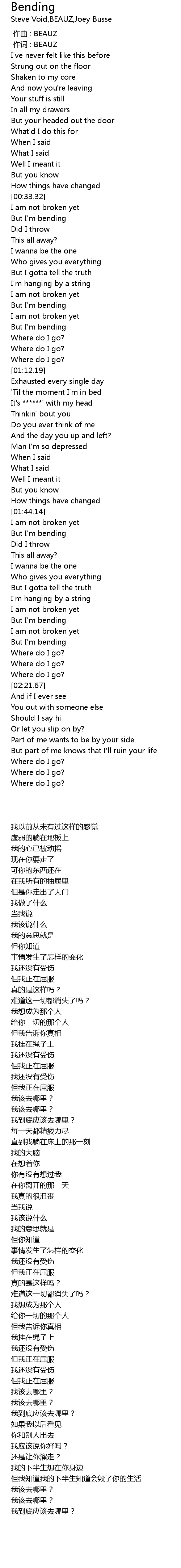 | [00:36.54] | But I' m bending |