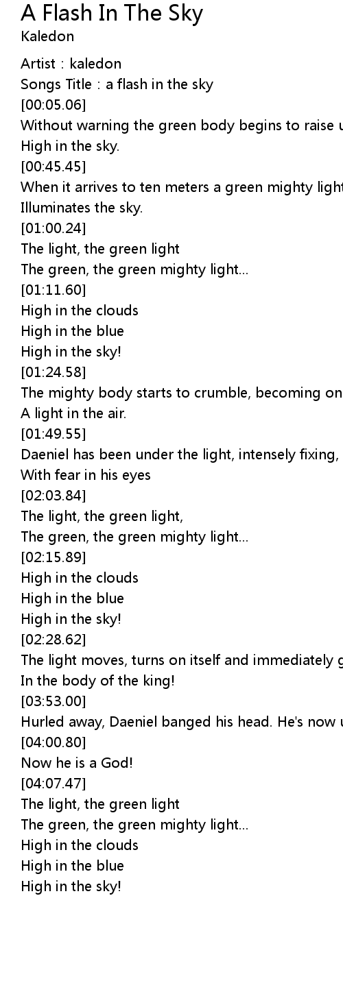 | [00:48.45] | When it arrives to ten meters a green mighty light |