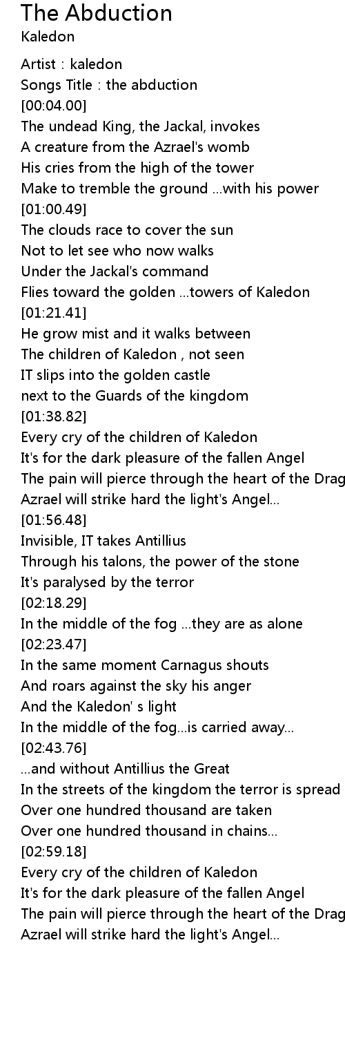 | [01:16.53] | Flies toward the golden ...towers of Kaledon |