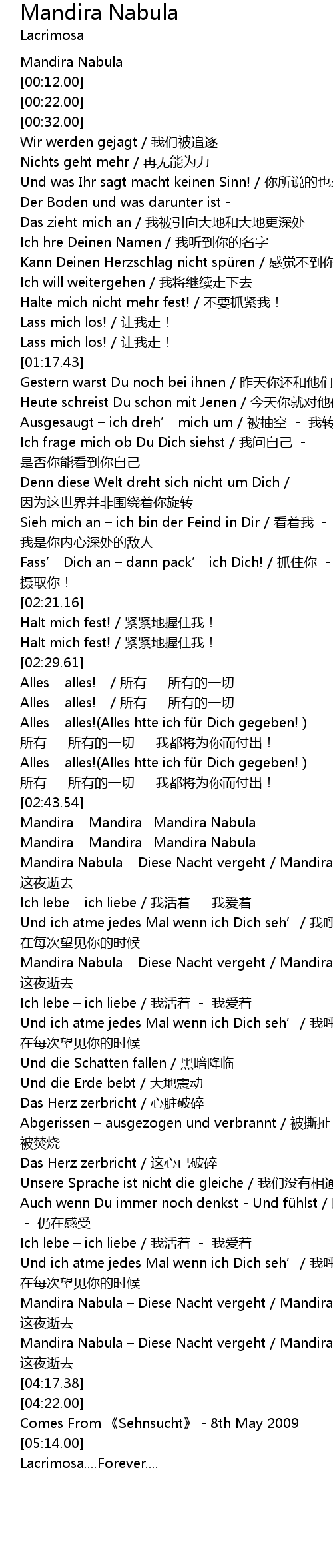 | [04:02.64] | Mandira Nabula – Diese Nacht vergeht / Mandira Nabula - 这夜逝去 |