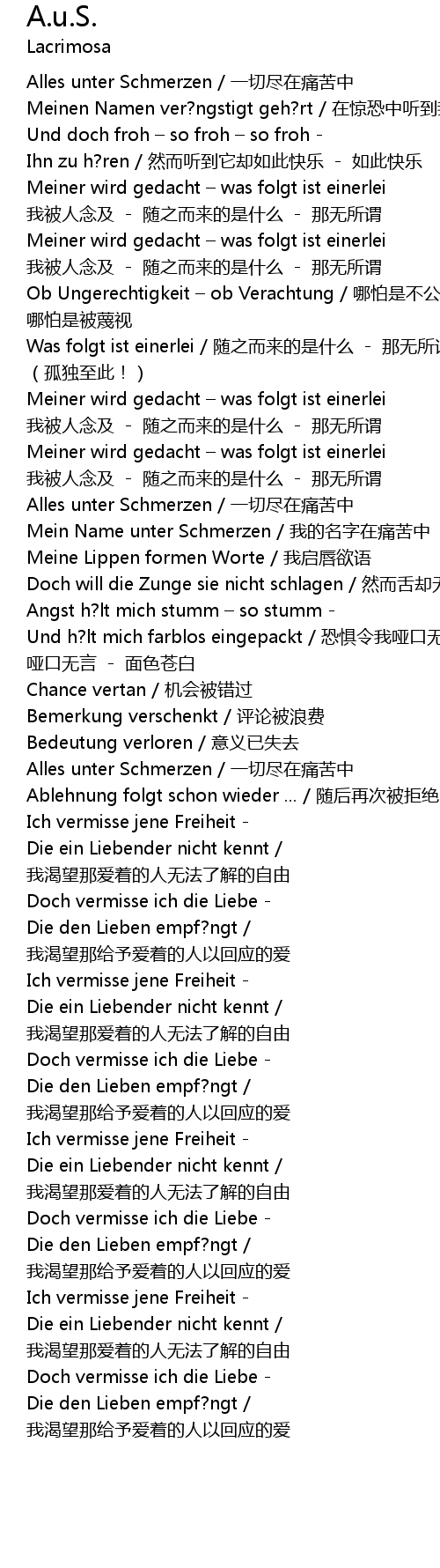 | [04:53.990] | Die ein Liebender nicht kennt / 我渴望那爱着的人无法了解的自由 |