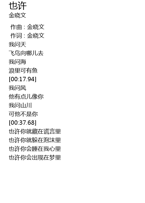 | [00:00.000] | zuo qu : jin xiao wen |