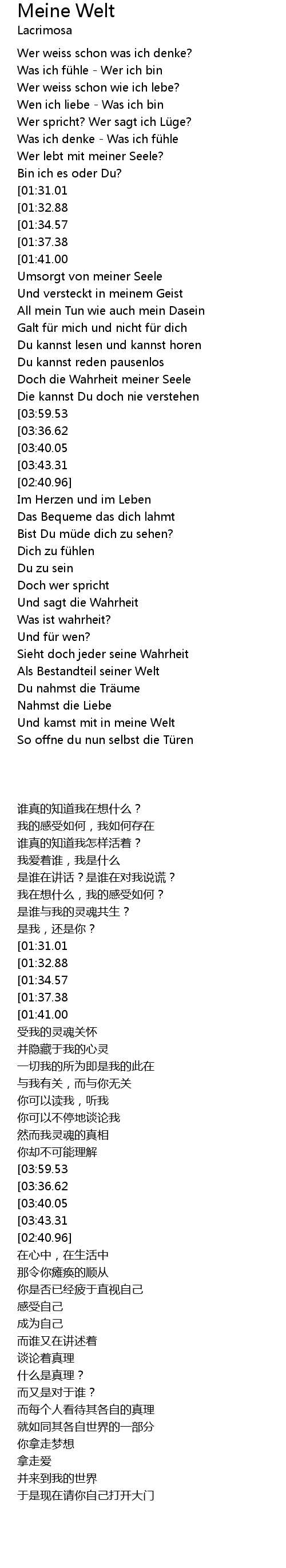 | [00:55.26][01:34.57][03:49.98] | Nahm dich mit in meine Welt |